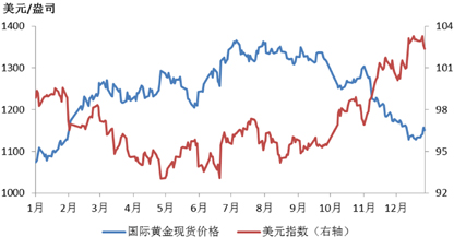 2017年,利多因素由“避险”向“抗通胀”转换,抗通胀因素对金价的提振作用将更为持续: 一是美国经济加速复苏,美元利率上升、回流本土,通胀抬头,使黄金抗通胀属性日渐显现,大概率在下半年成为主导因素。美国新一届总统将于1月就任,预计美国政治、军事、外交关注点将转向国内,对外战略收缩和回归本土发展实体经济成为主基调。经济领域,美元渐进加息进程不变,货币政策趋于收紧,规模空前的5500亿美元基础设施投资计划一旦推出,将保证美国本土投资快速增长,并带动通胀上升;放弃《跨太平洋伙伴关系协定》(TPP),将使全球贸易保护主义抬头,贸易摩擦加剧,但美国与其它国家的贸易逆差缩减成为确定性事件;减税、废除奥巴马医改法案等一系列财政刺激措施,将有助于提升美国国内消费。二是欧洲(欧盟及欧元区)方面,存在大量有可能造成政治、经济分裂的潜在黑天鹅事件,使黄金避险属性时有爆发,上半年短期内会加大黄金价格波动,并在下半年持续影响价值判断逻辑。三是国内方面,人民币汇率波动和贬值压力增大,人民币计价黄金的保值属性和资产配置价值凸显。