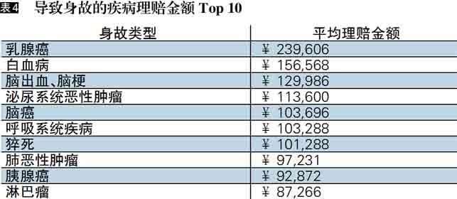 在导致身故的前十大原因中,恶性肿瘤排到了第一位,从理赔金额推算,癌症的治疗费用至少将近10万元。值得注意的是,交通事故也“榜上有名”,说明交通意外风险已到了不可忽视的程度。