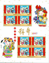 2017年新邮发行后的表现更加糟糕,走势明显呈弱,在已发行的6套邮票中,“京津冀协同发展”和“春夏秋冬”套票甫面世即跌破面值,市价分别跌至2.5元和3.7元,“京津冀协同发展”小全张的成交价为4.5元,也跌破了5.8元的售价,单枚成套的“商务印书馆”和“拜年(3)”套票均勉强站在1.2元面值附近,分别是1.2元和1.25元,而“千里江山图”套票小版张发行初价格为13元,3月底回升到16元,站上了面值。相对而言,“拜年(3)”和“春夏秋冬”小版张依然能够在面值上方运行,价格分别为14.5元和16元,“拜年(3)”、“商务印书馆”和“春夏秋冬”全张票分别在48元、55元和115元交易。