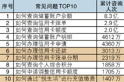 客户可以通过小微办理的业务80余种,其中,客户最常用的是储蓄账户余额、信用卡账单、信用卡额度等查询功能;小微每天为近200万人次用户查询账户余额,为62万人次用户查询信用卡账单,为40万人次用户查询信用卡额度。
