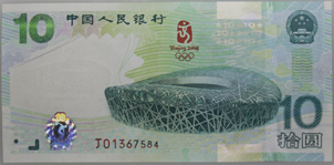 另外,“建国50周年纪念钞”和 “迎接新世纪念钞”同时还发行了连体钞,“建国50周年纪念钞”发行的是三连体钞,发行量为5万套,目前市场最新的价格为13000元。“迎接新世纪念钞” 发行的是双连体钞,发行量为10万套,目前市场最新的价格为10000元。而 “第29届奥林匹克运动会纪念钞”则因为种种原因而放弃了原先计划中拟发行的双连体钞,从而成为收藏投资者心中永远的痛和遗憾。