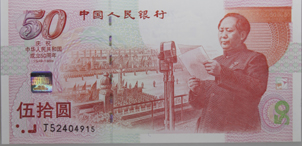 先来看最早发行并且发行量达到6000万枚的“建国50周年纪念钞”,主图为开国大典,全钞主色调为红色。由于发行量大,所以“建国50周年纪念钞”自从面世以来并不为收藏投资者重视,导致其市场价格长期在51元和55元之间徘徊,但是在2010年其市场走势一改原先的颓靡之势,价格也连续上涨,达到250元左右的高位,而2011年春节后,在大量资金的介入下,其市场价格已经达到350元,2014因为在南京文交所钱币邮票交易中心挂牌上市交易并且价格暴涨,导致实物品种也创出了新高,其最高的市场价格曾经达到过近2800元处,目前则已经跌至300元左右处。“建国50周年纪念钞”的最大优势在于其价格相对便宜,其次的优势是虽然发行量大但是在低位消耗的时间也最长。目前其最新的市场价格则为300元。