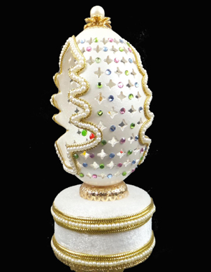 事实上,蛋雕的历史并不长,但其影响却源于公元六世纪的彩蛋。在基督教传入欧洲后,约在中世纪时代,开始有人将鸵鸟蛋予以彩绘装饰,取其具有“新生”、“重生”之意,进而使它成为复活节的装饰品,这种习俗迄今仍流行于欧美各国深受基督教影响之地区。但将装饰蛋提升至艺术品境界的功臣,则非俄国的Faberge家族莫属。公元1884年Faberge家族为沙皇亚历山大三世设计了第一款的“皇家复活蛋”,随即被指定为皇室御用品珠宝商。其后接连不断完成的皇家复活蛋系列产品,使装饰蛋成为举世皆知的艺术品,所创造的豪华风格与民间彩绘蛋艺术相结合,形成今日欧美地区装饰蛋之独特风格与流行。其作品至今依然令人望其项背而难及,有时候在拍卖会上出现,也均以惊人的高价被拍走,成为了艺术蛋的精品。