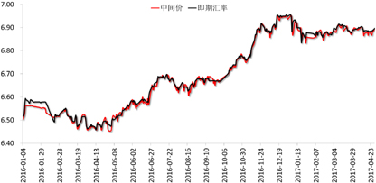 后市,人民币的贬值预期是继续淡化还是重启,还将取决于外部环境。一是特朗普的税改和医改计划能否顺利推进,这直接影响到市场对特朗普执政能力的判断,如果特朗普政府的政策推进仍然难见起色,预计金融市场将发生较大调整。二是美联储的加息节奏,预计美联储在6月14日货币政策会议上加息概率相对较大,届时将对美元形成一定支撑。三是欧洲政治风险事件,前期市场已反映了过多悲观情绪,从目前情况来看,法国大选中,中间派的马克龙当选概率较高,市场情绪的回调将对欧元形成支撑,从而压制美元。当然,考虑到去年黑天鹅事件频发,今年的法国大选中,直到尘埃落定前,预计市场都将保持谨慎。在此预期下,预计5月美元兑人民币的主要波动区间为【6.85,6.92】。