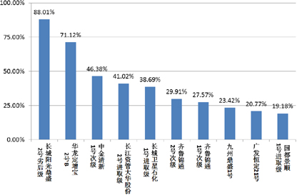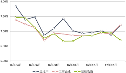 从收益方面来看,1-2(含)年期限段产品平均预期收益率为7.03%,环比下降9.22BP,其中,房地产领域平均预期收益率为7.24%,环比上升3.70BP,工商企业领域平均预期收益率为7.08%,环比下降14.29BP,基础设施领域平均预期收益率为6.94%,环比上升24.00BP;2-3(含)年期限段产品平均预期收益率为7.56%,环比上升30.54BP,其中,工商企业领域平均预期收益率为8.50%,环比上升115.00BP,基础设施领域平均预期收益率为7.48%,环比上升17.50BP;3年以上期限段产品平均预期收益率为6.93%,环比下降6.67BP。(图6)