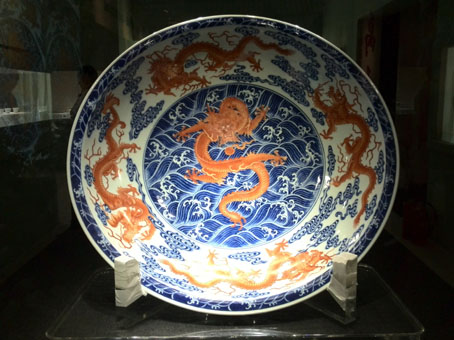 这件乾隆乙卯(1759)年制纯金印泥盒,引起我的兴趣,请工作人员拿来看看,金质的墨盒上精致的花纹图案突起于墨盒表面,给人一种极其华丽的感觉,拿在手里沉甸甸的,一侧有个小抽屉,拉开可以放置一枚印章。这件如此精致的印泥盒用纯金打造,该是宫内造办处专门制造,兴许还是乾隆书房御用之物,真真是精品算是开了眼界!