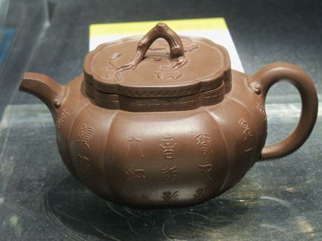 今年保利预展在农展馆只要是1号馆和11号馆,我先观看了1号馆,请读者跟随我共同欣赏:一进大门巨型展板的后面就是紫砂艺术的展示,我对紫砂艺术情有独钟,偶尔见到喜欢的紫砂艺术品也购买一两件,紫砂艺术品包罗万象,最为代表性的还数紫砂壶,我认真地观看了其中感兴趣的紫砂艺术品,包括笔筒、紫砂盆类,让我感兴趣的是一件叫做清乾隆“笨岩款御制堆泥王维诗意图海棠形壶”,有“笨岩”底款,壶身铭文:“空山不见人,但闻人语声。返影入深林,复照青苔上。”底价180万-280万元。我曾写过《故宫珍藏的紫砂壶》发表在中华文化画画报,对于紫砂文化因喜爱而有意识地搜集这方面的资料,但对于笨岩这个人还真不了解,既然他能进宫制壶,说明此人的实力,如同清廷向徽州征召“制墨教习”,歙县推荐汪近聖次子汪惟高前去应招,遂在京城御书处教习制墨。从此汪氏父子名声大振(例举了汪氏七代名家略)。汪氏家族有《鉴古斋墨薮》流传后世。