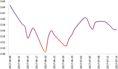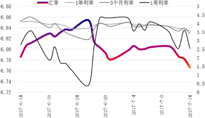 离岸人民币市场:上周初,离岸人民币在6.8附近小幅波动,周中美联储主席耶伦在听证会上发表偏鸽派言论,加之美国经济数据不及预期,令市场对美联储加息预期降温,美元走势疲弱带动离岸人民币走强,周五升至6.76水平,各期限掉期点略跌,市场流动性基本维持充足。