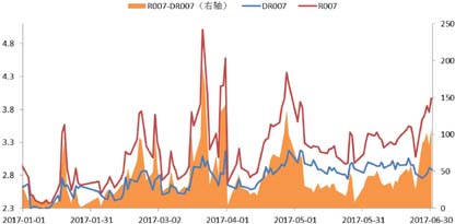 央行2016年四季度将执行了多年的“稳健”的货币政策调整为“稳健中性”的货币政策。从今年上半年的实际执行情况看,“稳健中性”的货币政策更偏“中性”,货币政策相对去年下半年明显偏紧。具体来看表现在两个方面: