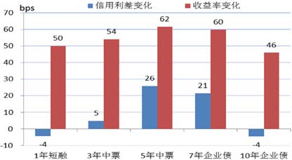 图4 6月末相对上年末的AAA级信用利差和收益率变化