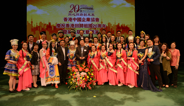 为庆祝香港回归20周年,香港中国企业协会于2017年7月5日在北角新光剧院举办了「庆祝香港回归祖国20周年暨第八届文艺汇演」。在港的中资企业代表们欢聚一堂,载歌载舞,为香港回归献上自己的贺礼。