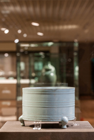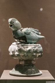 汝窑天青釉刻花莲瓣纹熏炉 汝窑天青釉鸳鸯钮熏炉盖