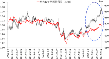 尽管如此,当前的市场情绪似乎已经一边倒地看多欧元。这直接的结果是,任何退出宽松货币政策的言论将被无限放大,而维持宽松政策的言论会被“选择性忽略”。7月欧洲央行货币政策会议后的新闻发布会上,德拉吉一句“将在秋季讨论调整QE”便让欧元兑美元刷新近两年高位,而其多次强调的“欧元区依然需要刺激政策”却被迅速湮没,这便是力证。