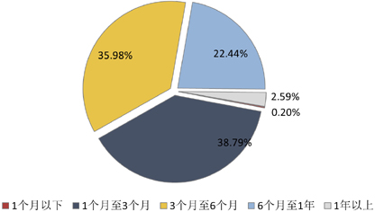 从投资期限来看,1个月以下产品发行了20款,环比增加1款,市场占比下降0.01个百分点至0.20%;1-3个月产品发行了3848款,环比增加429款,市场占比上升1.64个百分点至38.79%;3-6个月产品发行了3569款,环比增加23款,市场占比下降2.56个百分点至35.98%;6-12个月产品发行了2226款,环比增加230款,市场占比上升0.75个百分点至22.44%;1年以上产品发行了257款,环比增加35款,市场占比上升0.18个百分点至2.59%。(图3)
