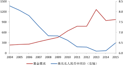 图1 实物黄金需求与人民币汇率基本呈同向变动