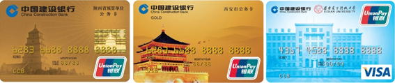陕西 古丝绸之路的起点,2100多年前,张骞正是从长安出使西域,在声声驼铃中开辟出连接欧亚的丝绸之路,开启了中国与世界各国友好交往的大门。“一带一路”建设,再次将陕西从内陆腹地变为东西双向开放的前沿。陕西省预算单位公务卡以大雁塔为设计元素。大雁塔是唐永徽三年(公元652年),玄奘为保存由天竺经“丝绸之路”带回的经卷佛像而主持修建,是丝绸之路文化交流的结晶。西安市公务卡面上的西安城墙源于隋唐,也见证了长安城作为国际大都市和丝路起点的盛况。西安电子科技大学龙卡等产品,代表性体现了陕西建设科技教育中心的成就。