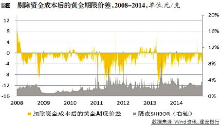 同期,黄金期货的价格发现功能逐渐完善,2013年起,期现价差开始能够相对合理地反映人民币资金成本。通过扣除资金成本后的期现价差变化,我们发现,上市初期期货价格大幅偏离现货,此后不断修正。期间价差变化波动较大的时段多集中在2011和2013年,表明资金利率大幅波动会导致期货定价扭曲。实际上2013年钱荒期间,期货定价扭曲程度已远远小于此前。(图3)