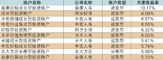 投连险账户业绩表现:月度平均收益率为1.54%,泰康人寿积极成长型投资账户表现最佳