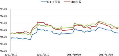 CFETS人民币指数虽然在11月份有所下跌,但仍保持基本稳定,维持在94-95区间波动。(图2)