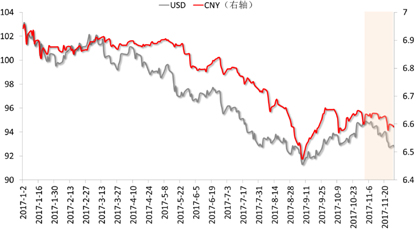 考虑到美联储12月加息的预期已体现在当前美元价格中,除非美国货币政策超预期鹰派,或特朗普税改进程意外顺利,否则美元将难以摆脱今年来疲弱的大背景。但是当前美元指数已经处于较低位置,继续下行的空间有限,预计9月触及的91.01将是年内低位。