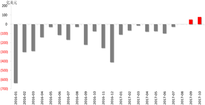 中国经济数据再次回落。本月经济数据延续此前的规律,季末冲高之后,再次回落。但并不同于二三季度初的大幅回落,10月经济数据仅小幅回落,或显示经济的较高韧性。海外需求的改善是今年拉动经济增长的重要动力,欧美经济的高景气度给外需提供了较强支撑,2017年全年经济无忧。