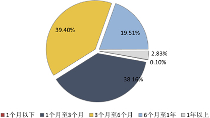 从投资期限来看,1个月以下产品发行了11款,环比保持不变,市场占比下降0.03个百分点至0.10%;1-3个月产品发行了4034款,环比增加835款,市场占比下降0.67个百分点至38.16%;3-6个月产品发行了4165款,环比增加994款,市场占比上升0.91个百分点至39.40%;6-12个月产品发行了2063款,环比增加420款,市场占比下降0.43个百分点至19.51%;1年以上产品发行了299款,环比增加84款,市场占比上升0.22个百分点至2.83%。(图3)
