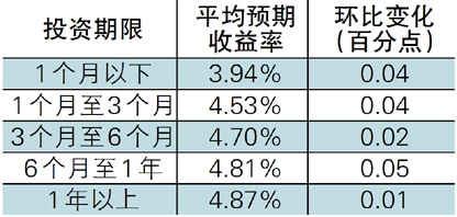 表1 2017年11月人民币银行理财产品平均预期收益率