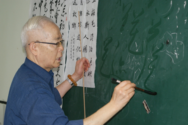 七十三岁的陈金朴,精神矍烁。他1992年转业到建行,在闸北支行做办公室任主任。他回忆那段在基层行的岁月时说:“在闸北支行四年,是我与大家艰苦奋斗的四年,那时装修了多少个网点,自己从没拿过一根钉子,更不用说请客送礼之类的事,领导与员工都是风清气正的”。1996年,陈金朴调到市分行老干部活动中心,一直到退休。是分行老干部工作的见证人和亲历者,陈金朴有一个特别的爱好,那就是书法,是行里公认的建行书法家。从在岗到退休,他没有中断过为老同志讲解书法理论,书画兴趣班活动内容丰富多彩。退休后,他依然主动坚持为大家授课,而不管是上辅导课,还是写书法作品,他都分文不取。普及高雅的中国传统艺术,陈金朴乐此不疲。他说, 这不仅仅是个人的兴趣爱好,也是为更多喜爱书法的老同志、新员工增添艺术修养,发挥余热。