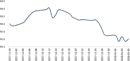 上周,美联储公布12月会议纪要,暗示可能因税改更快加息,提振美元,但随后美元再次回归颓势,跌破92关口。目前美元遇好难涨、逢空易跌,若无超预期利好因素,短期内恐难以摆脱疲弱背景。弱势美元,叠加市场结汇需求增加,推动人民币升破6.50关口,周五收于6.4851,较前一周升值0.41%。