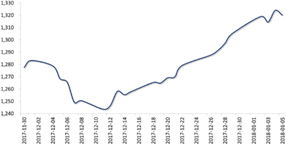 在美元指数疲弱、中东局势动荡带动市场避险情绪升温的双重影响下,国际黄金价格2018年开局走强,周五收于1320.30美元/盎司,较前一周上涨0.09%。