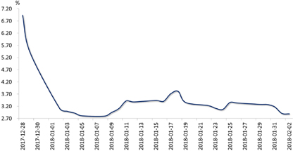 上周,离岸人民币兑美元在触及2015年811汇改来最高水平6.2771后小幅回落,周五收于6.3134,较前一周升值0.2%。离岸人民币中长期限掉期点变动不大,短期限掉期点因临近中国春节假期因素略有上升,市场流动性有所收紧, 整体仍然平稳。