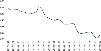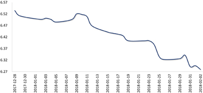 上周,美元指数先跌后涨,周中特朗普任内首份国情咨文报告和美联储货币政策会议均未能扭转美元颓势,但周五的非农就业报告提振美指小幅反弹,目前在89附近盘整。美指疲弱,加之结汇需求增加,带动人民币兑美元整体走升,最高涨破6.27关口,周五收于6.2798,当周累计上涨0.75%,为连续第八周升值。短期内,人民币料维持易升难贬走势。