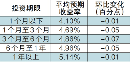 收益表现:各期限类型产品收益水平均有所下降,3-6个月期限类型跌幅最大