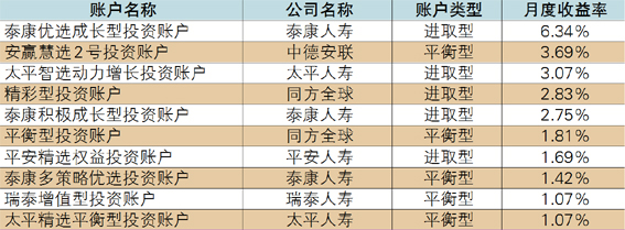 投连险账户业绩表现:平均月度收益率为-0.64%,泰康人寿优选成长型投资账户表现最佳