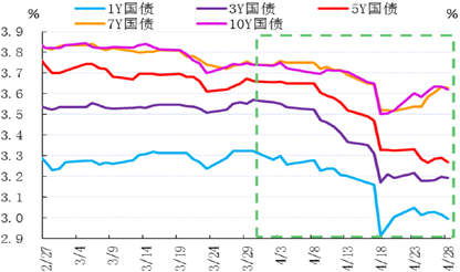 虽然4月的资金面趋紧,但短端利率下行幅度反而较大,主要因短期国债的供给量较小,境外机构对短债的需求旺盛,从而推动债券短端收益率的下行幅度明显大于长端。国开10年期债券流动性好,交易盘占比较大,交易活跃,推动该券收益率的下行幅度明显大于同期国债。