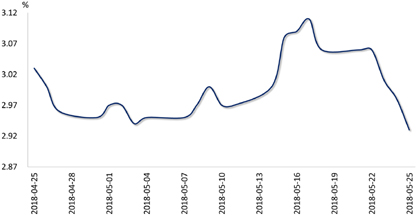 货币市场:由于月末临近,加之5月底前企业需要清缴上年度企业所得税,7天回购利率震荡上行。截至上周五,7天回购利率较前一周上行75BP至3.57%。