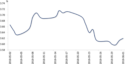 债券市场:尽管上周一级市场配置需求旺盛,但基本面数据向好,4月规模以上工业企业利润增长明显加快、5月官方制造业PMI创2017年10月以来高点,多空因素推动下,国债收益率小幅波动。截至上周五,10年期国债收益率较前一周上行1BP至3.62%。