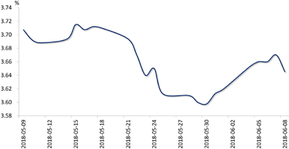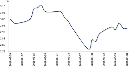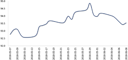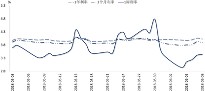 上周,因意大利政局趋稳,市场对欧元区的担忧降温,加之欧洲央行多位官员就货币政策发表鹰派言论,助力欧元反弹,相应美元指数高位回落。美元指数的下跌,加上市场结汇需求旺盛,带动人民币兑美元升值,周五收于6.4097,当周累计升值0.11%,结束了连跌三周的走势。