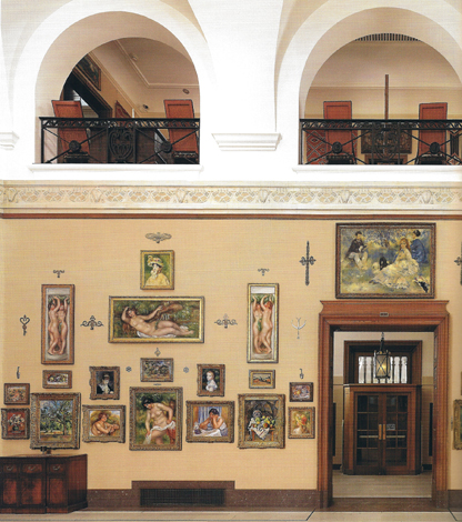 我们应该这样说,巴恩斯既是一位乖戾的收藏家,也是一位十分与众不同的艺术教育者。他自己撰写专著,也像牧师布道一样宣传自己的美学主张,当然,这种教育方式是填鸭式的,是不容许被怀疑的。自1916年起,巴恩斯强迫自己药品制造厂未受过正规教育的工人们每天花两小时学习哲学、心理学、艺术欣赏,特别要研读杜威的作品。如果巴恩斯没有坚持控制这些 “门徒”的思想的话,这些专题讨论会可能会有益处的。但这样的课堂很像宗教裁判所(“the Inquisition”),所有的成员必须遵守教义,如此一来,其结果可想而知。1922年,巴恩斯将这种非正式的教育团体转化为专门面向成年人的教育的基金会,即今天享有盛誉的巴恩斯基金会。身家过亿万的巴恩斯狂热地喜欢艺术,这实在是一件好事。他的“大手笔”之一便是出资600万美元来创建巴恩斯基金会。“大手笔”之二就是建立一座博物馆。为了提供一个活动场地,他决定建造一座博物馆,该博物馆也是一个私人的教育机构,选择当时风行的法国文艺复兴风格来建造它。为了选择最好的石灰岩,巴恩斯在1922年12月远赴法国的多家采石场调查情况。一个月之后,巴恩斯采购了900吨石灰岩,另外花了50万美元购藏了100余幅画作。1923年,巴恩斯将他新近购藏的75件现代艺术杰作(大部分是马蒂斯、莫迪格利安尼和苏汀的作品)在令人生畏的费城美术学院(Pennsylvania Academy of Fine Arts)展出,结果受到了外行人士的嘲弄。三年后,巴恩斯打算把巴恩斯基金会捐赠给母校宾夕法尼亚大学,但学校当局对这一慷慨的捐赠不予理睬。更糟糕的是,巴恩斯的这个捐赠设想也被著名的费城艺术博物馆(Philadelphia Museum of Fine Arts)拒绝了!数次闭门羹激发了巴恩斯狂热的收藏热情,圆了巴恩斯的艺术梦想。