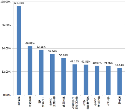 图8 本月业绩表现前十的阳光私募产品