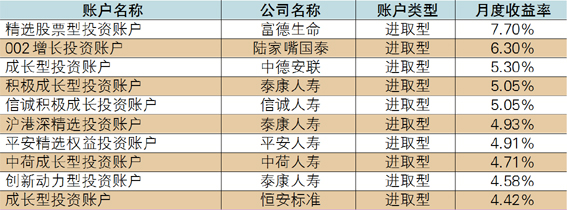 表2 2018年5月投连险投资账户收益表现TOP10