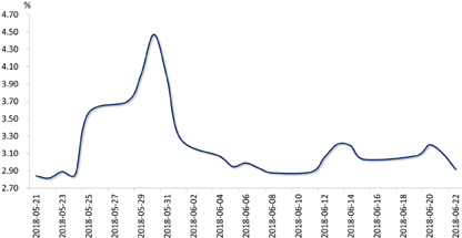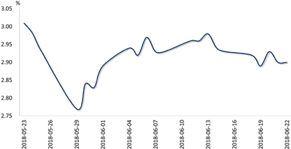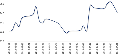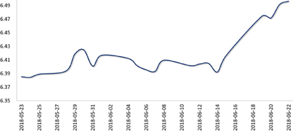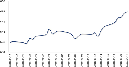 上周,美元指数先涨后跌。周初,因欧元疲弱,加之美联储主席鲍威尔在全球央行行长会议上发表相对鹰派言论,暗示将继续渐进加息,美元指数受到提振,一度站上95关口。随后,因美国经济数据不佳,加之欧元低位反弹,美元指数高位回落。美元的快速上涨,叠加市场对中美贸易摩擦升级的担忧,令人民币大幅承压,周五收于6.4964,当周累计下跌1.23%,为今年来最大周跌幅。