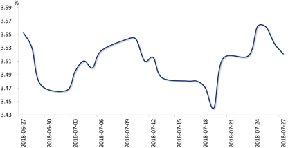 上周,欧美贸易摩擦缓和,加之美国二季度GDP增速4.1%创2014年以来新高,黄金投资吸引力下降,美元指数波动反复,黄金价格随之低位震荡。截至上周收盘,COMEX黄金期货价格当周小幅上涨0.05%至1232.5美元/盎司。