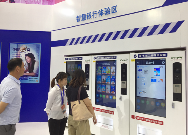 中国建设银行智慧银行展示区亮相武汉国际“互联网+”产业博览会。■ 图/CFP