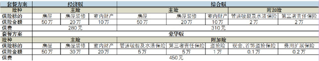 “安守家财”家庭财产保险具有三大特色:1.投保方案选择多样,投保方便快捷;2.责任全面,涵盖更多风险;3.价格便宜,低价享受多重保障。(表)