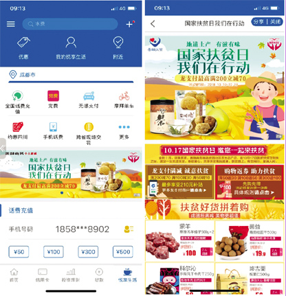 95533答:建设银行响应国家扶贫号召,在善融商务平台设立“善融扶贫”专栏,销售陕西、重庆、河南、辽宁等贫困地区特色农副产品。您在通过“扶贫专栏”购物扶贫的同时,还可参与“龙支付满减”、“购物返券”等优惠活动,详情可通过手机银行“悦享生活-国家扶贫日我们在行动”栏查看,感谢您对扶贫事业的关注与支持。
