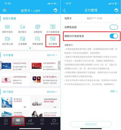 登录“中国建设银行”手机银行,在信用卡菜单点击“支付管理”,可对该功能设置开启或关闭。
