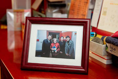 李秀芬(化名)老人将一个相框小心翼翼地摆放在桌面上。照片中,她抱着工作人员赠送的玩偶,脸上洋溢着幸福的笑容。