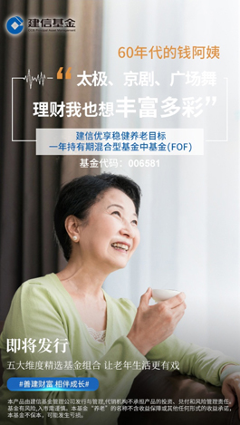 建信基金表示,养老目标基金在美国市场已非常成熟。从美国投资公司协会公布的数据来看,截至2017年底,诞生于上世纪90年代的美国目标日期基金规模已超过11160亿美元,来源于养老金的资金占比为87%,是过去十年最受投资者和退休计划发起人欢迎的产品。而在我国,养老目标基金未来发展前景广阔。随着社会老龄化程度持续加深,养老目标基金的“诞生”将充分发挥公募基金专业理财能力在居民养老投资中的作用,助力我国养老金第三支柱建设。未来,建信基金也将全方位参与我国公民个人养老事业,为投资者提供不同风险收益特征的养老目标产品,力争获取长期收益。