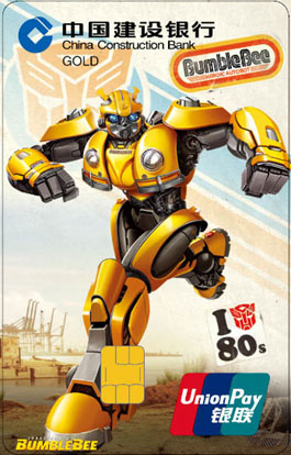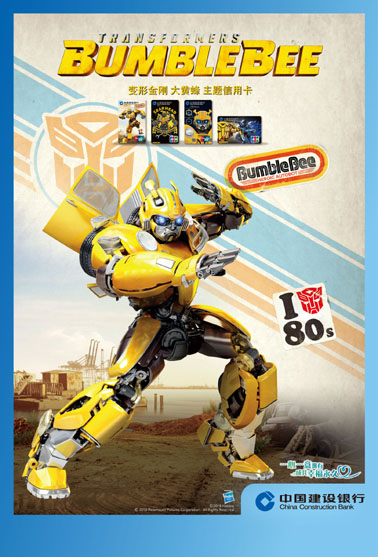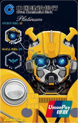 2019年新年伊始,中国建设银行再度携手美国孩之宝公司,以火热上映的变形金刚《大黄蜂》电影为主题,推出龙卡变形金刚大黄蜂信用卡。这也是建设银行在其推出变形金刚系列信用卡产品的第十年,发行的第四套变形金刚信用卡。在此之前,建设银行曾先后以2009年《变形金刚2》、2014年《变形金刚4:绝迹重生》和2017年《变形金刚5:最后的骑士》为主题推出变形金刚卡,以十年不断的专注,收获了大批年轻拥趸。